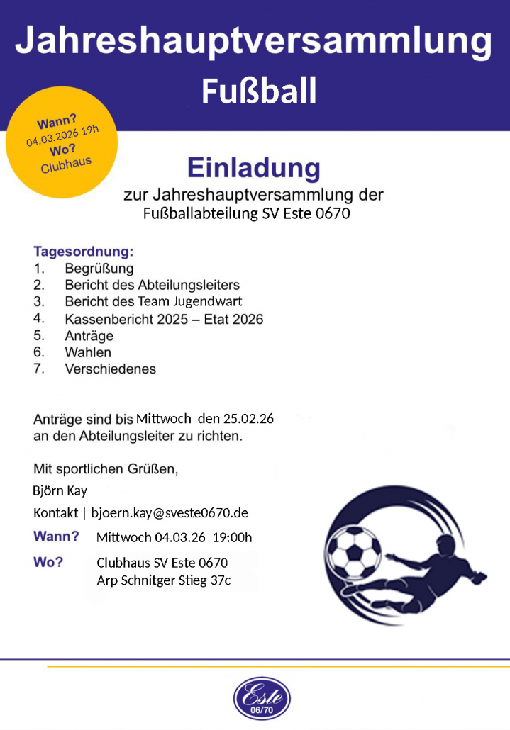Einladung zur JHV 2026 Abteilung Fussball
