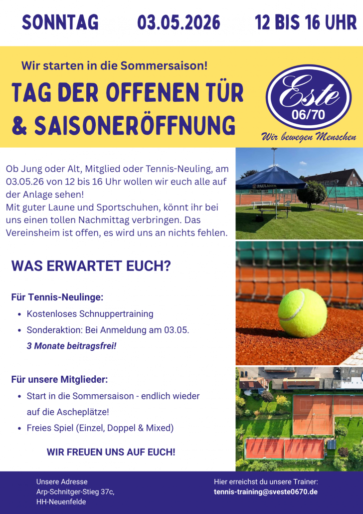 endlich ist es wieder soweit – wir starten gemeinsam in die Sommersaison! 🎾☀️