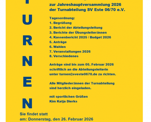 Turnen – Einladung zur JHV am Do. 26. Februar 2026